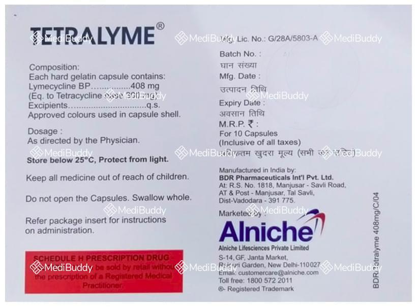 Prior to commencing Tetralyme 408mg Capsule, inform your healthcare provider of any history of antibiotic allergies, liver or kidney issues. Disclose all medications being taken as interactions might occur. Pregnant or breastfeeding individuals should consult a healthcare professional before using Tetralyme 408mg Capsule. Additionally, the medication may cause drowsiness, dizziness, or blurred vision, so refrain from driving if experiencing such symptoms.