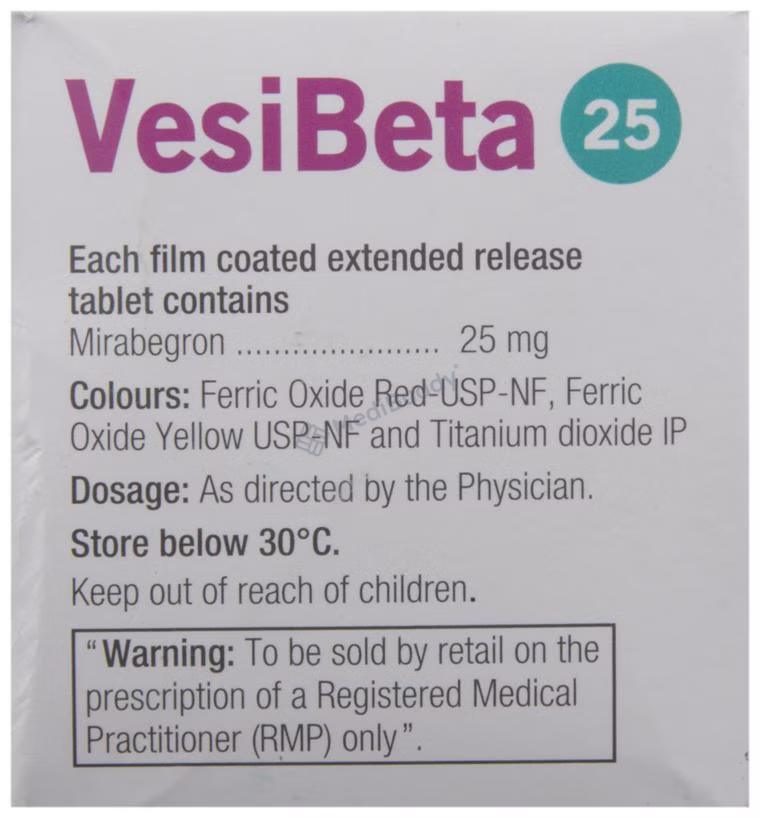 VesiBeta 25 Tablet ER is a medication that is commonly prescribed to alleviate symptoms of overactive bladder. These symptoms can include frequent urination, sudden and urgent need to urinate, and difficulty controlling urination. This drug works by relaxing the muscles around the bladder, thereby enhancing its capacity to store urine effectively.