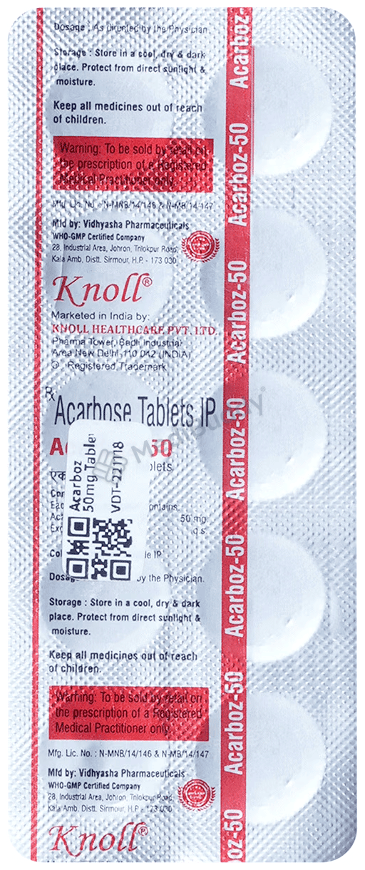 Moreover, Acarboz 50mg Tablet not only aids in controlling blood sugar levels but also reduces the risk of cardiovascular disease-related death in patients with Type 2 diabetes and pre-existing cardiovascular conditions. It is important to take this medication regularly, along with a proper diet and exercise regimen, to lead a normal and healthy life. Acarboz 50mg Tablet inhibits the action of intestinal enzymes responsible for breaking down complex sugars into simple sugars, thereby delaying sugar absorption into the bloodstream and preventing an abnormal increase in blood sugar levels post meals.