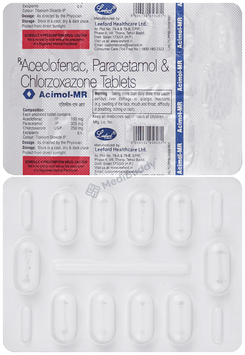 You can take Acimol MR 100mg/325mg/250mg Tablet with or without food, and the prescribed dosage and duration will be contingent on the severity of your condition. It is recommended to continue the medication as directed by your doctor even if you start feeling better.