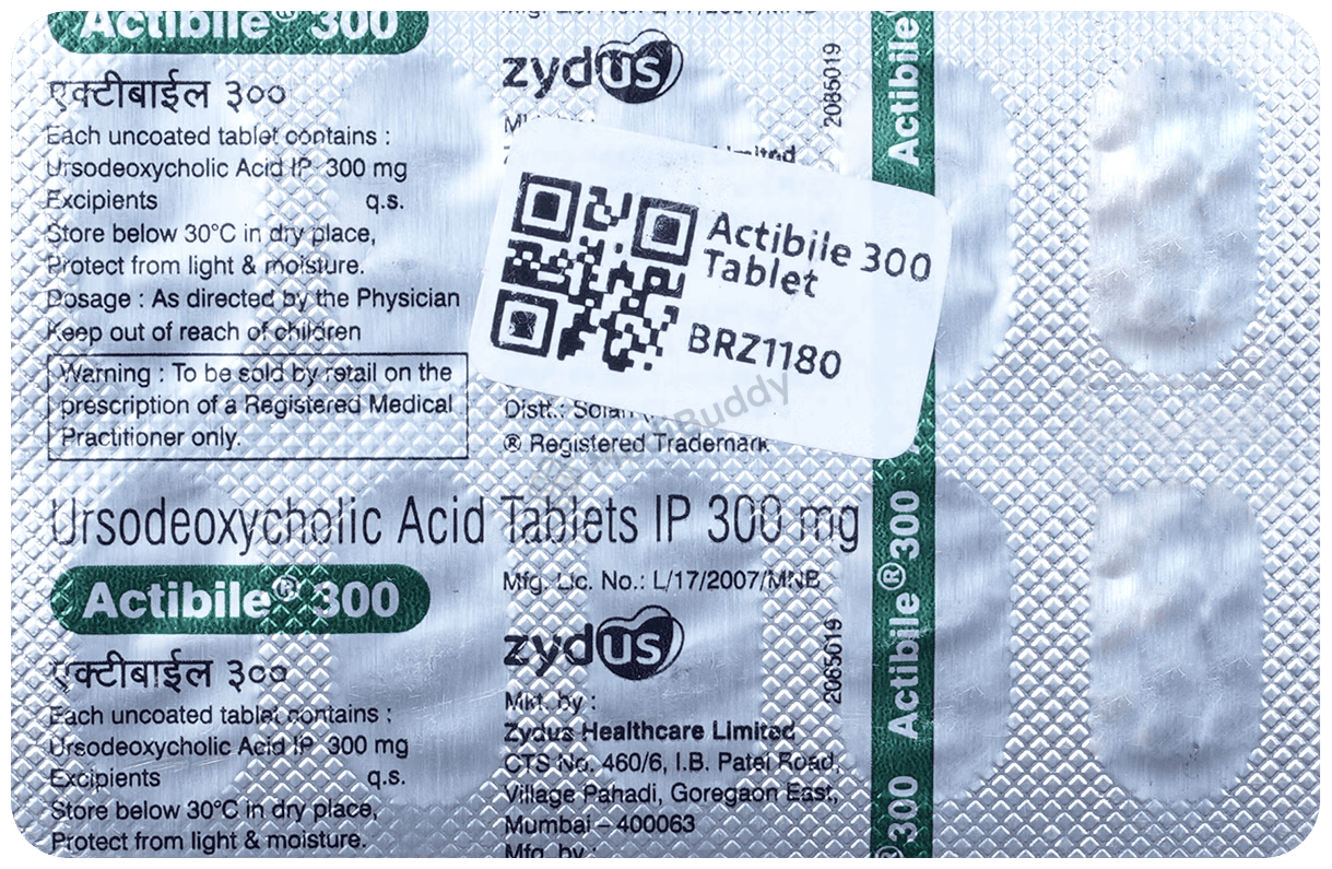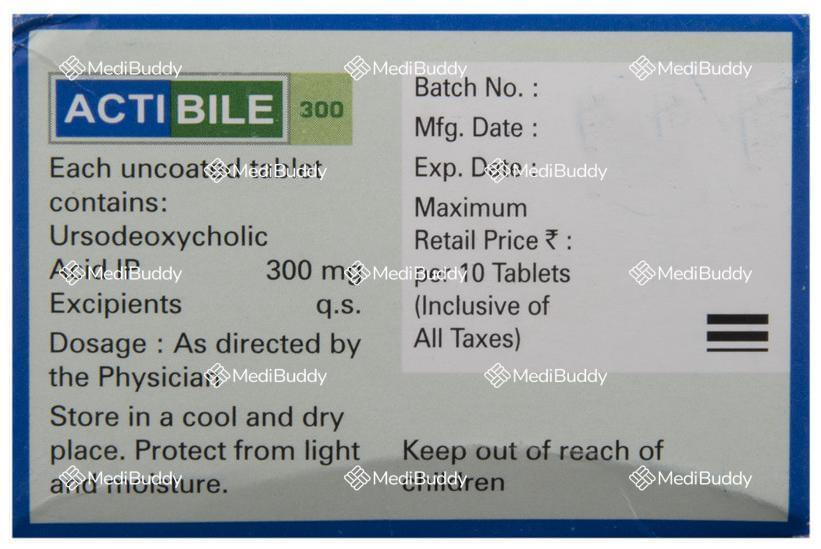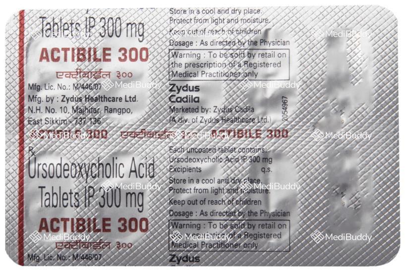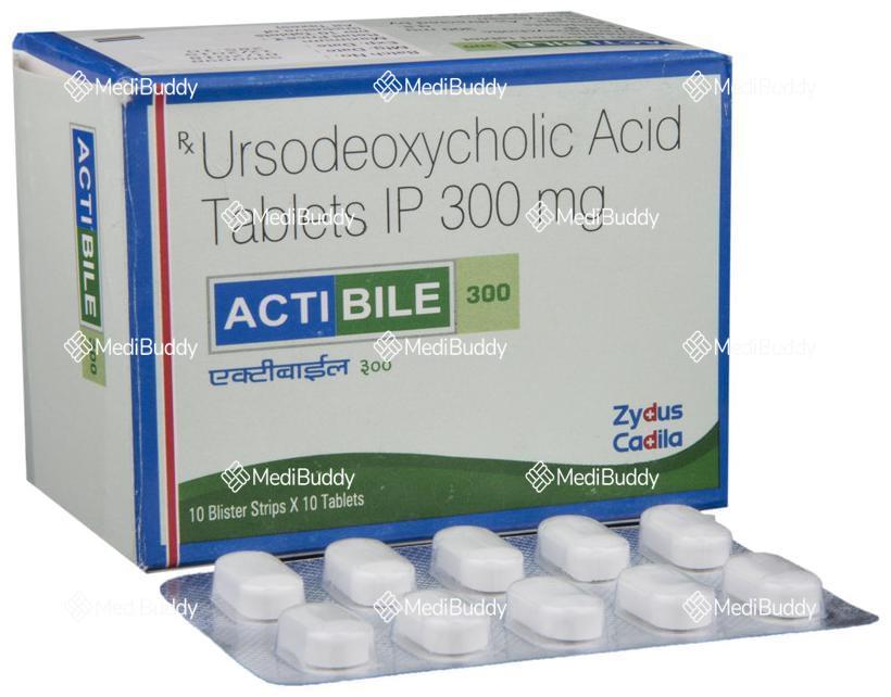 Actibile 300 Tablet is a medication used to dissolve certain gallstones and prevent their formation. It is also effective in treating a liver condition known as primary biliary cirrhosis. The active ingredient in Actibile 300 Tablet is ursodeoxycholic acid, a naturally-occurring bile acid that helps in breaking down cholesterol stones in the gallbladder. By reducing cholesterol production in the blood, Actibile 300 Tablet aids in dissolving gallstones primarily composed of cholesterol.
