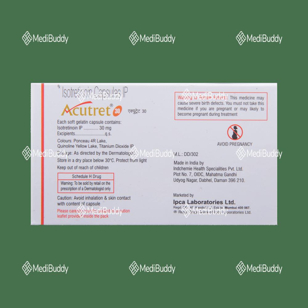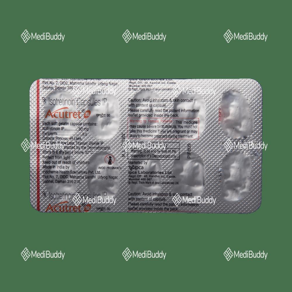 To use Acutret 30 Capsule properly, always follow your doctor's instructions regarding the dose and duration. It is important to take Acutret 30 Capsule with food. You can take Acutret 30 Capsule 10's with a glass of water. Remember to swallow the capsule whole; do not crush, break, or chew it. Your physician will determine the correct dosage and how long you should take the medication based on factors such as your age, weight, and medical condition. Make sure to take Acutret 30 Capsule on a full stomach. If you have any questions or concerns about how to use the medication, consult your doctor for further guidance.
