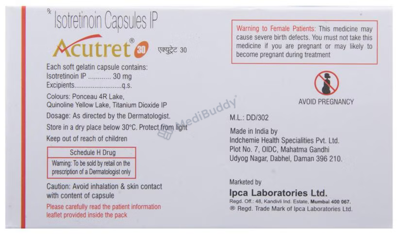 It is essential to inform your doctor if you have any allergies to Acutret 30 Capsule or other medications. Pregnant or breastfeeding individuals should avoid taking Acutret 30 Capsule due to potential adverse effects on the baby. Patients experiencing depressive symptoms or suicidal thoughts while taking Acutret 30 Capsule should seek medical advice immediately.