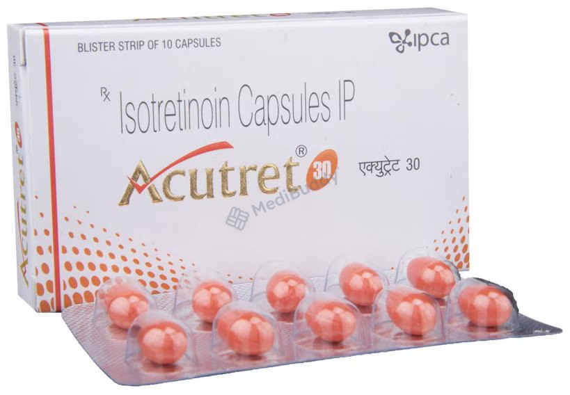 Acutret 30 Capsule, also known as Isotretinoin, is a type of medicine classified as a retinoid, which is a synthetic form of Vitamin A. This medication is primarily prescribed for the treatment of severe acne, particularly nodular acne, that has not shown improvement with other treatments such as antibiotics. Nodular acne is a severe form of acne characterized by large, swollen, red, and tender lumps on the skin due to excess oil production. Acutret 30 Capsule works by reducing the production of sebum, the skin's natural oil, thereby decreasing the activity and size of sebaceous glands, unblocking pores, and eliminating acne-causing bacteria.