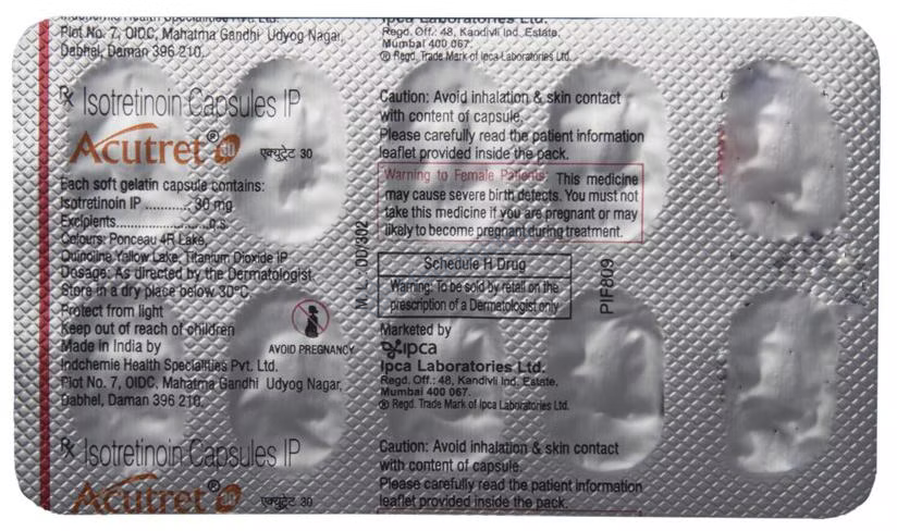Certain precautions should be taken while using Acutret 30 Capsule, including avoiding blood donation and cosmetic procedures for a specified period after treatment. Patients with liver or kidney disease, high levels of blood lipids, or a history of mental illness should exercise caution when using Acutret 30 Capsule. Pregnant women, women planning pregnancy, breastfeeding women, and children under 12 years of age are advised against using Acutret 30 Capsule without consulting a healthcare provider.
