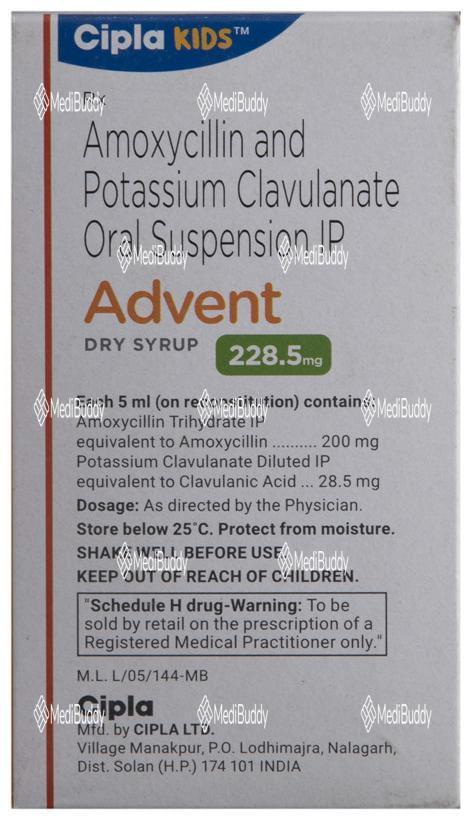 Moreover, Advent 228.5mg Dry Syrup is also beneficial in the treatment of bacterial infections. This combination medication works by targeting and killing bacteria responsible for infections in different parts of the body, such as the ears, sinuses, throat, lungs, urinary tract, skin, teeth, joints, and bones. Amoxycillin halts bacterial growth, while clavulanic acid enhances amoxicillin's effectiveness and diminishes bacterial resistance. This broad-spectrum antibiotic is potent against a variety of gram-positive and gram-negative bacteria, providing relief from infections and promoting faster recovery.
