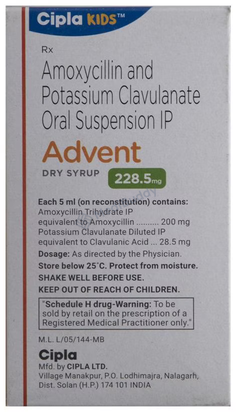 Advent 228.5mg Dry Syrup is an essential medicine for treating bacterial infections in children, and following the prescribed dose, timing, and method is crucial for effective treatment. If any persistent or worsening side effects are experienced, prompt consultation with the doctor is advised.