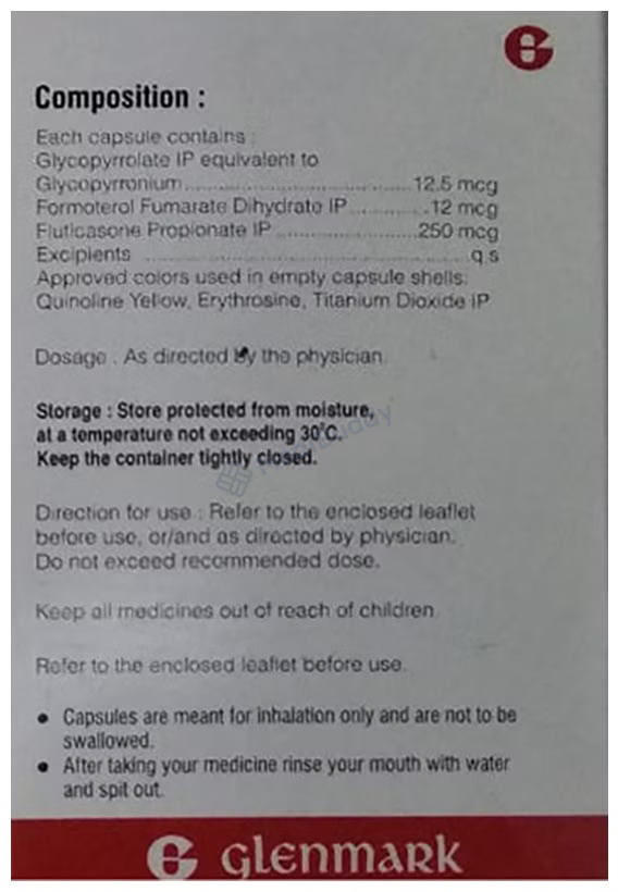 Glycopyrrolate(12.5mcg) + Formoterol(12mcg) + Fluticasone Propionate(250mcg)