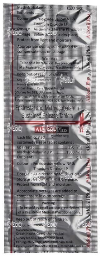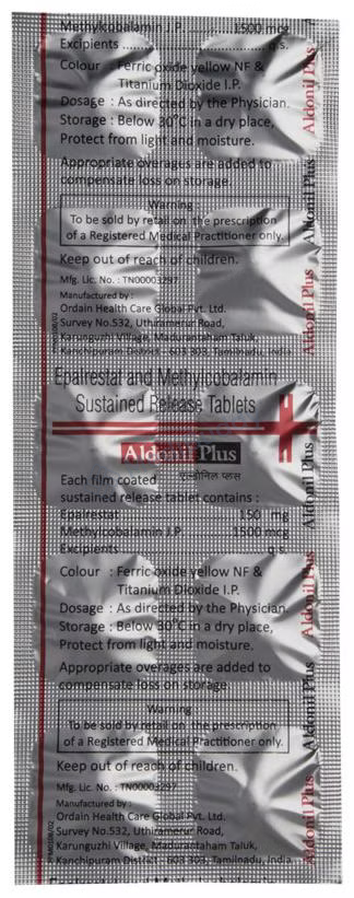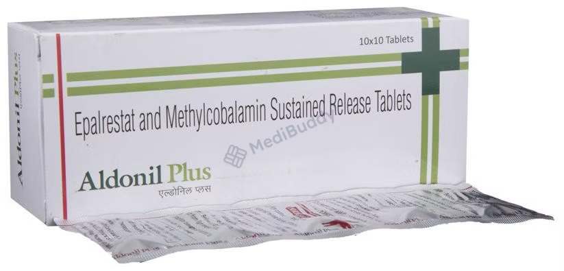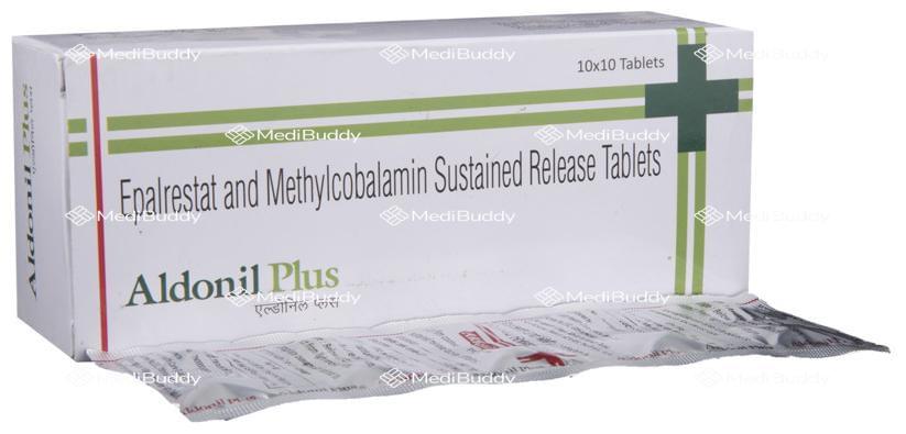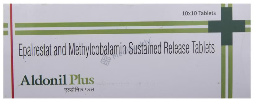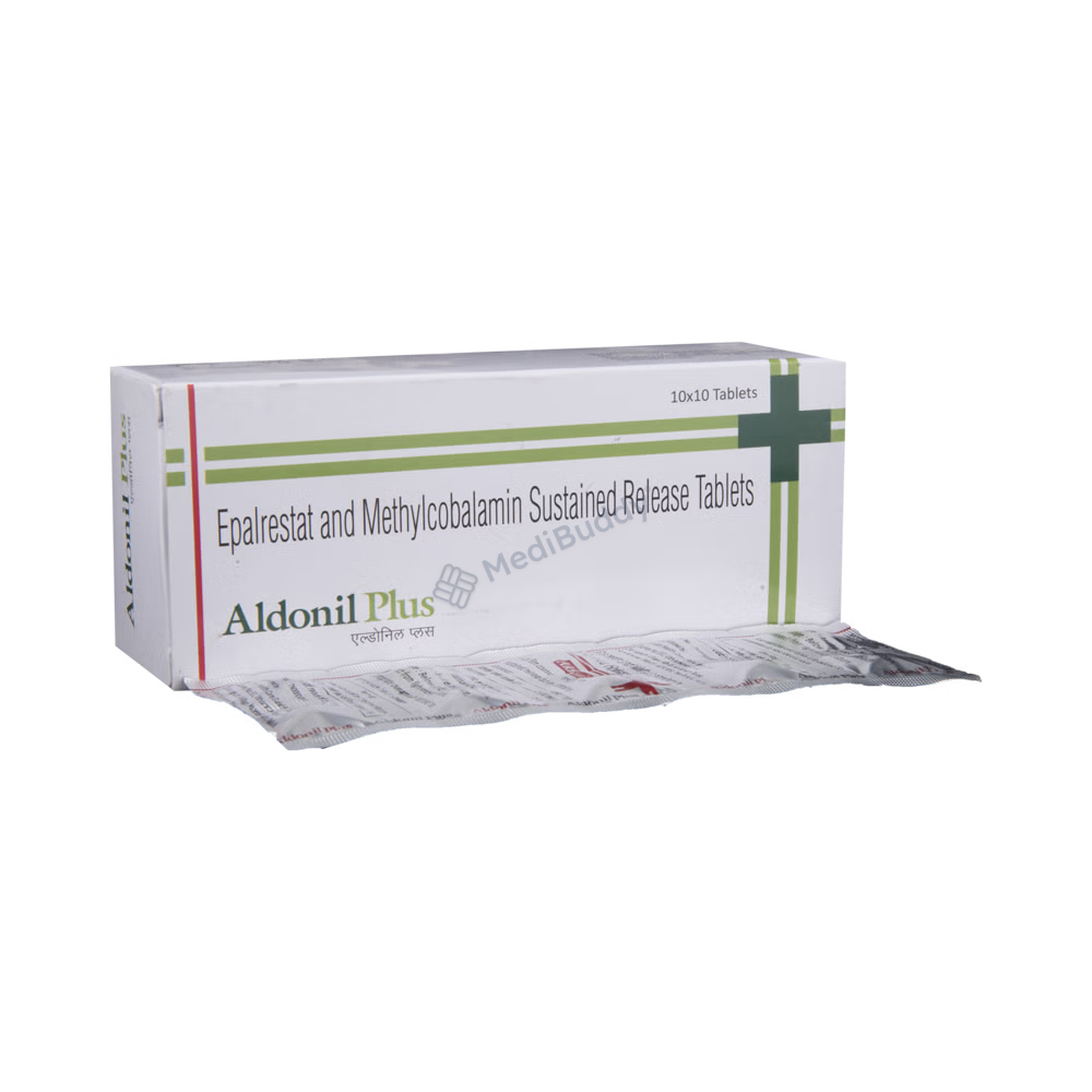 Aldonil Plus Tablet 10's is a combination medicine specifically designed for the management of diabetic neuropathy, a condition characterized by nerve damage due to high blood sugar levels. This condition commonly affects the nerves in the legs and feet of individuals with type 1 and type 2 diabetes. The tablet contains Epalrestat and Methylcobalamin, which work synergistically to alleviate diabetic neuropathic pain. Epalrestat inhibits the enzyme aldose reductase, preventing the accumulation of sorbitol that leads to nerve pain in diabetic patients. Methylcobalamin aids in the repair and protection of damaged nerve cells by producing myelin, a crucial substance for nerve function. Together, Aldonil Plus Tablet 10's effectively treats diabetic neuropathy.