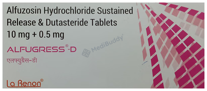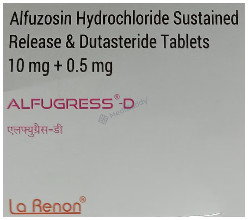Alfugress-D Tablet SR is a medication that combines two different medicines to help men with an enlarged prostate gland. This condition, known as benign prostatic hyperplasia (BPH), can cause symptoms such as difficulty urinating or needing to urinate more frequently. The tablet is not meant for preventing prostate cancer.