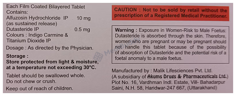 Alfuzosin(10mg) + Dutasteride(0.5mg)