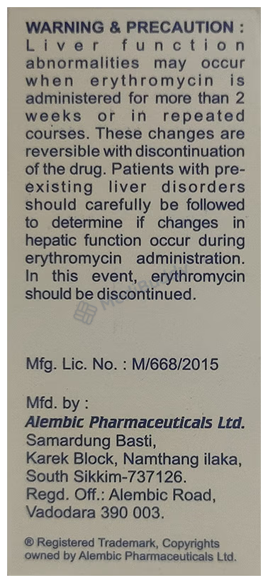 Before consuming Althrocin 100mg Drop, it is crucial to be aware of certain warnings. Do not take this medication if you have allergies to Althrocin Drops 10ml or other macrolide antibiotics. It is important not to stop taking the medication even if you start feeling better, as discontinuing treatment prematurely could result in the reoccurrence of your condition. Inform your doctor if you have liver problems, myasthenia gravis, a heart rhythm disorder, or an electrolyte imbalance. In rare cases, using Althrocin Drops 10ml may lead to diarrhea, and if you experience watery or bloody diarrhea, discontinue the medication and seek medical advice. Do not take anti-diarrheal medications without consulting your doctor first. Prior to using Althrocin Drops 10ml, discuss with your doctor if you are pregnant, planning pregnancy, or breastfeeding. Avoid alcohol consumption to prevent potential adverse effects like dizziness. Make sure to inform your doctor about your medical history and current medications to avoid any possible interactions or adverse effects.