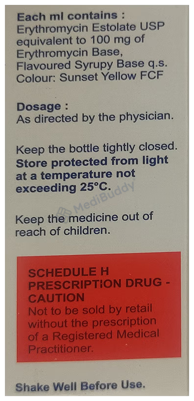 Althrocin 100mg Drop is an antibiotic medication used to treat bacterial infections in various parts of the body, such as the eye, ear, nose, throat, lungs, teeth, skin, and urinary tract. It can also be used as an alternative therapy for those allergic to penicillin. This medication is effective in treating specific infections like pertussis (whooping cough) and diphtheria. It is recommended to administer Althrocin 100mg Drop on an empty stomach, either one hour before or two hours after food, to enhance absorption. However, if stomach upset occurs, it can be taken with a small amount of food. The usual dosing frequency is four times a day, and the duration of treatment typically ranges from 5 to 10 days depending on the severity of the infection and the response of the child to the medication.