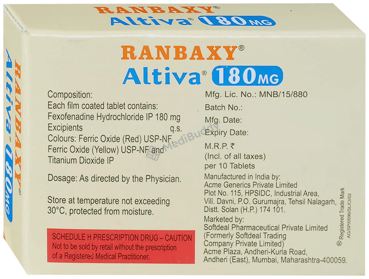 Before driving or using machinery, ensure Altiva 180mg Tablet does not cause drowsiness or dizziness. Monitor your alertness and reactions.