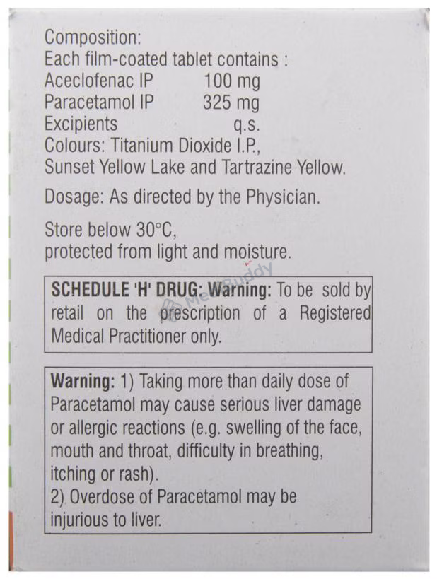 Aceclofenac(100mg) + Paracetamol(325mg)