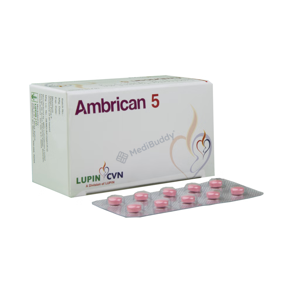 To use Ambrican 5 Tablet, follow the instructions provided by your doctor regarding the dose and duration. Swallow the tablet whole with a glass of water. Avoid chewing, crushing, or breaking the tablet. You can take Ambrican 5 Tablet with or without food, but it's recommended to take it at the same time each day for the best results. Following these guidelines will help you maximize the benefits of Ambrican 5 Tablet and ensure its effectiveness in managing your health condition. Be sure to consult your doctor if you have any questions or concerns about the proper usage of this medication.
