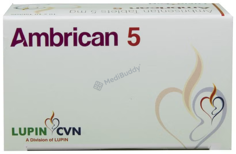 By widening the constricted pulmonary arteries, Ambrican 5 Tablet increases blood supply to the lungs, thereby lowering blood pressure and relieving symptoms of pulmonary arterial hypertension. It helps improve the quality of life, enhance exercising ability, and delay disease progression for individuals dealing with this condition. It may also be prescribed in combination with other medicines used to treat pulmonary arterial hypertension.