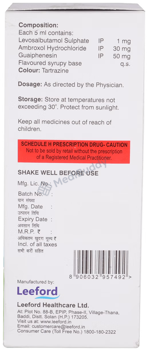 Ambroxol(30mg) + Levosalbutamol(1mg) + Guaifenesin(50mg)