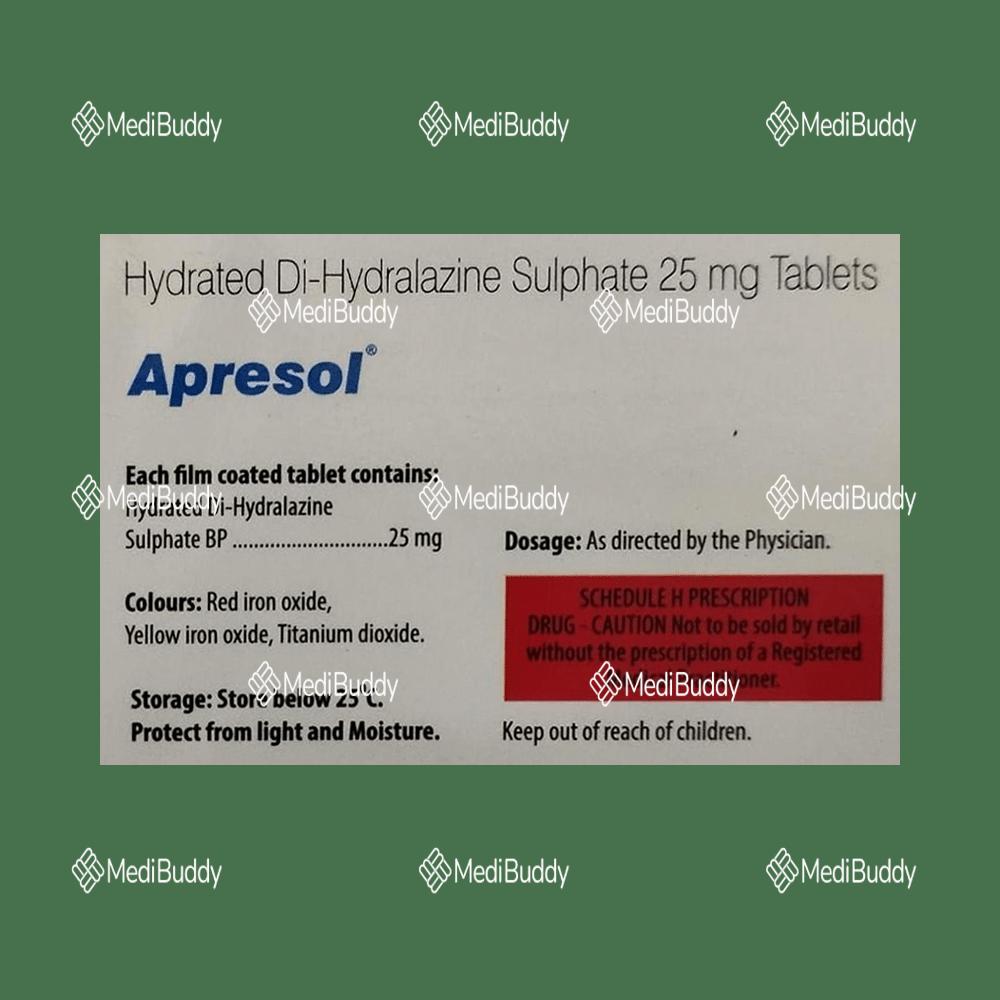 Apresol Tablet should be used carefully in individuals with severe kidney disease. Dosage adjustment may be necessary. Consult your doctor before use due to limited information available for this medication.