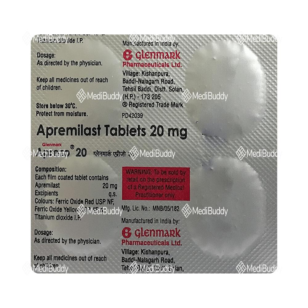 Overall, Aprezo 20 Tablet is a valuable treatment option for conditions such as psoriatic arthritis, plaque psoriasis, and Behçet’s disease in adults when other treatments are inadequate. It is essential to be aware of the possible side effects and precautions associated with this medication to ensure its safe and effective use.