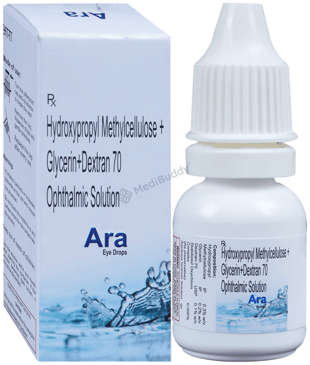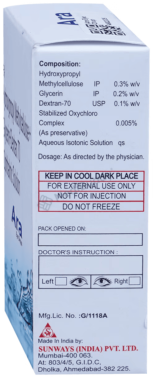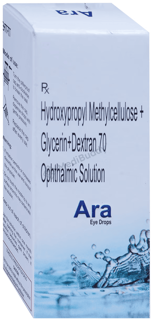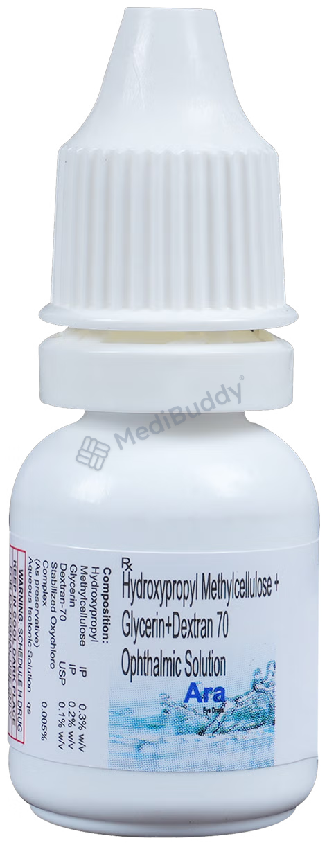 Ara Eye Drop is used to treat dry eyes, a condition where the eyes don't produce enough tears to stay moist. Factors like prolonged computer use, medications, or environment can cause it. The eye drops add moisture, providing relief from burning and discomfort. Remove soft contact lenses before using the drops. Follow your doctor's instructions for dosage and duration, and check the label before use. Temporary side effects like burning or irritation may occur, but if they persist or worsen, consult your doctor.
