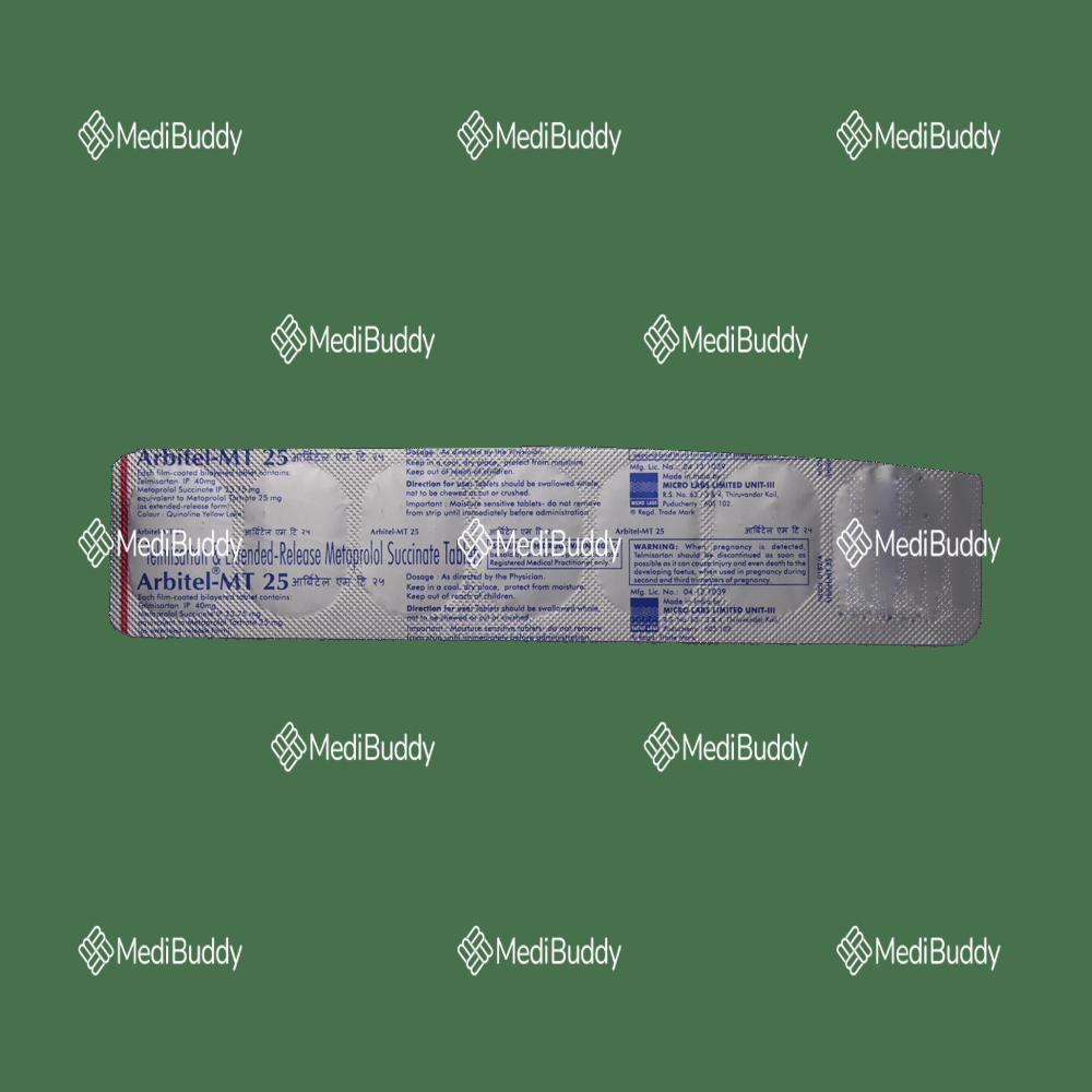 Before consuming Arbitel-MT 25 Tablet ER, it is crucial to take some precautions for your safety and health. This medicine is primarily used to treat high blood pressure, reducing the risk of heart attacks and strokes. It is recommended to take Arbitel-MT 25 Tablet ER with food at the same time daily to ensure consistent medication levels in your blood. Consult your doctor to determine the duration of treatment as abruptly stopping the medicine without medical advice can worsen your condition. Although you may feel fine, high blood pressure often shows no symptoms.