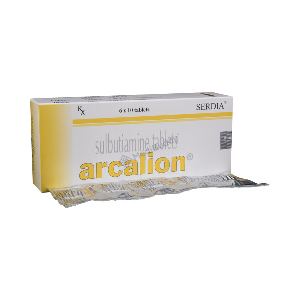 Arcalion Tablet is a medication used for the treatment of a condition known as asthenia, characterized by persistent tiredness and weakness. This tablet may also be prescribed along with other medicines to enhance daily activities in individuals with Alzheimer's disease and psychogenic erectile dysfunction. It contains Sulbutiamine, a derivative of thiamine that acts on the brain to increase thiamine levels and is believed to have mild stimulant effects, improving memory and reducing feelings of weakness.