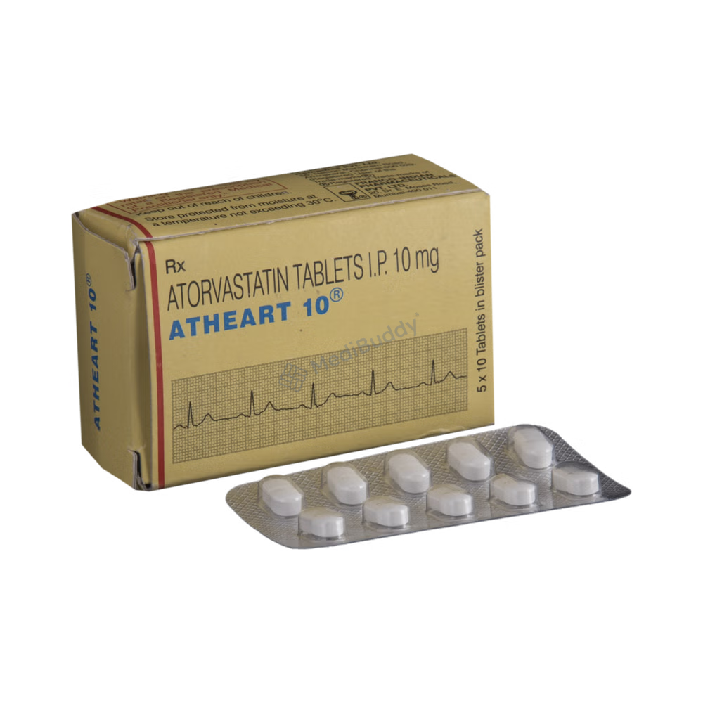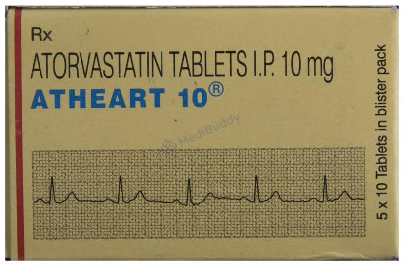 Atheart 10 Tablet is a medication that falls under the category of statins and is commonly used to lower cholesterol levels, reducing the risk of heart diseases. Cholesterol, a fatty substance, can accumulate in blood vessels, causing narrowing and potentially leading to heart attacks or strokes. It is essential to regularly check cholesterol levels and follow a holistic treatment approach, including a healthy diet, exercise, and lifestyle changes. Atheart 10 Tablet is recommended for long-term use under medical guidance to maintain cholesterol levels and reduce the risk of heart-related conditions.