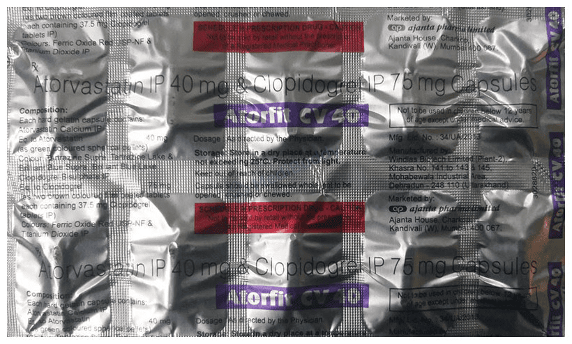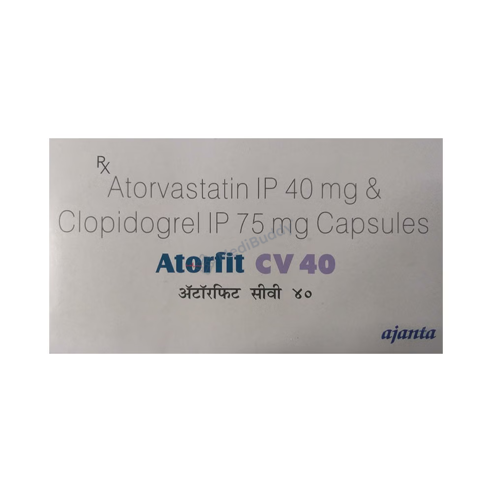 Atorfit CV 40 Capsule is a synergistic blend of two medicines known for their role in preventing heart attacks and strokes. This medication works by effectively reducing the levels of "bad" cholesterol (LDL) and triglycerides in the body, thereby lowering the risk of cardiovascular events. Additionally, it helps in inhibiting the formation of blood clots, which can further contribute to heart-related complications.