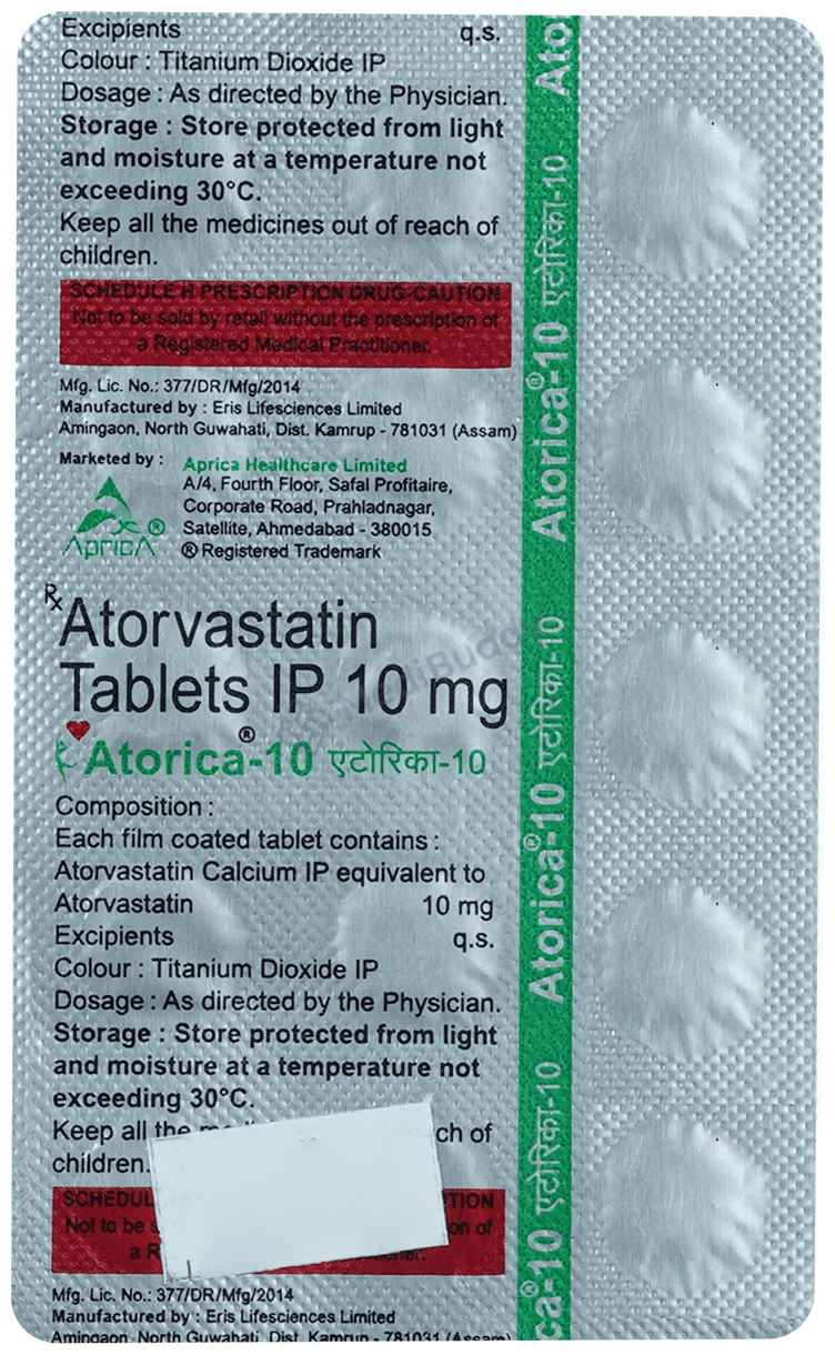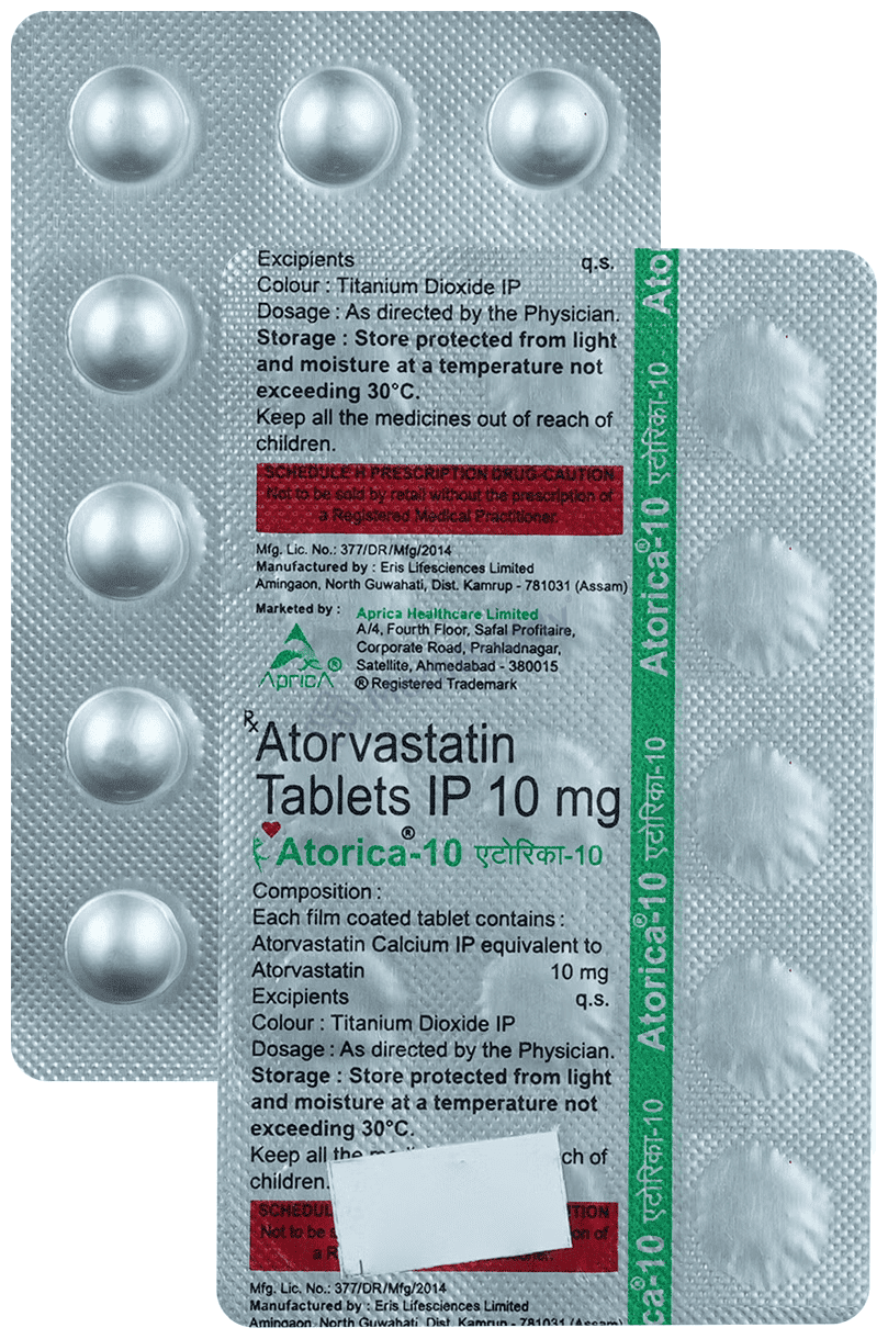Atorica 10 Tablet, a medication classified as a statin, is widely prescribed to individuals to address elevated cholesterol levels and reduce the risk of heart diseases. Cholesterol, a fatty substance that can accumulate in blood vessels, leading to constriction and potentially resulting in heart attacks or strokes, is effectively managed with the use of Atorica 10 Tablet. It contains Atorvastatin, which helps lower low-density lipoprotein (LDL) or 'bad' cholesterol while increasing high-density lipoprotein (HDL) or 'good' cholesterol levels in the blood.