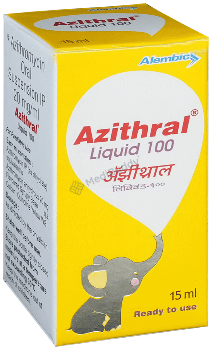 Azithral 100 Liquid is a type of antibiotic medicine primarily used to combat bacterial infections in various parts of the body, such as the respiratory tract, ear, nose, throat, skin, and eyes, among others, in both adults and children. It is effective in treating conditions like pneumonia, bronchitis, tonsillitis, sinusitis, acne, and sexually transmitted diseases like gonorrhea. The medication is specifically designed to slow down or eliminate the growth of harmful bacteria by obstructing their ability to produce necessary proteins for survival. However, it is important to note that Azithral 100 Liquid does not work against viral infections like the flu or common cold.