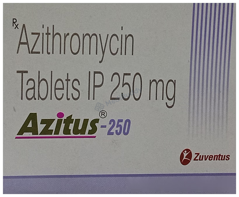 Azitus 250 Tablet is an antibiotic used to treat various bacterial infections in the respiratory tract, ears, nose, throat, lungs, skin, and eyes. It also helps with typhoid fever and certain sexually transmitted diseases. The medicine should be taken orally, one hour before or 2 hours after a meal, as directed by your doctor. Completing the full course is essential to avoid infection return. Common side effects like vomiting, nausea, stomach pain, and diarrhea are usually temporary and can be managed. Inform your doctor about any allergies or heart issues before use.