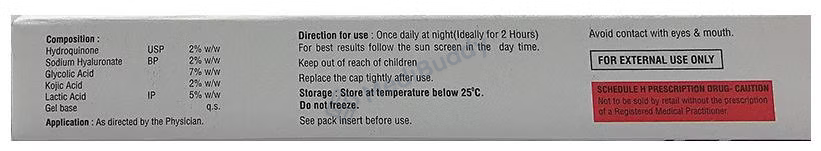 Hydroquinone(2% w/w) + Sodium Hyaluronate(2% w/w) + Glycolic acid(7% w/w) + Kojic Acid(2% w/w) + Lactic Acid(5% w/w)