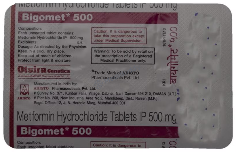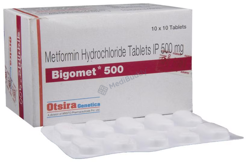 Bigomet 500 Tablet is a medication used to manage type 2 diabetes mellitus and Polycystic ovary syndrome (PCOS) in women. For diabetes, it helps in controlling blood sugar levels to prevent serious complications associated with the disease. It belongs to a group of anti-diabetic medications called biguanides and is often prescribed when diet and exercise alone are not sufficient to control blood sugar levels effectively.