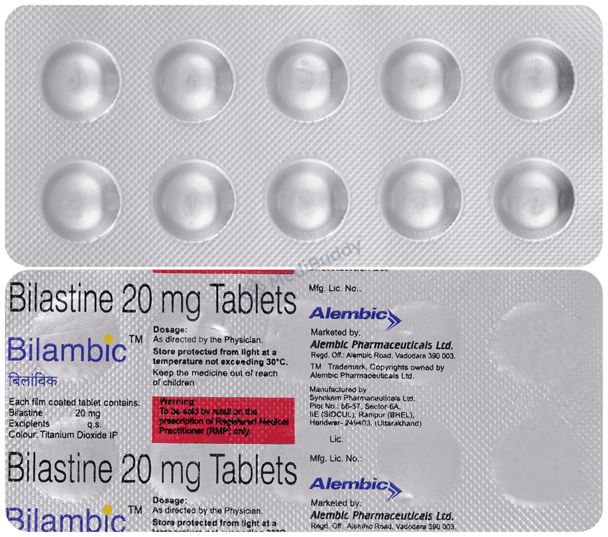Bilambic 20mg Tablet is a medication classified as an antihistamine, which is commonly used to alleviate allergy symptoms such as runny nose, congestion, sneezing, watery eyes, and stuffiness. Allergies are triggered by the body's immune response to non-harmful external substances known as allergens, which can range from seasonal allergens like pollen to food or pet dander allergies.