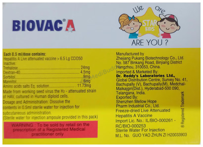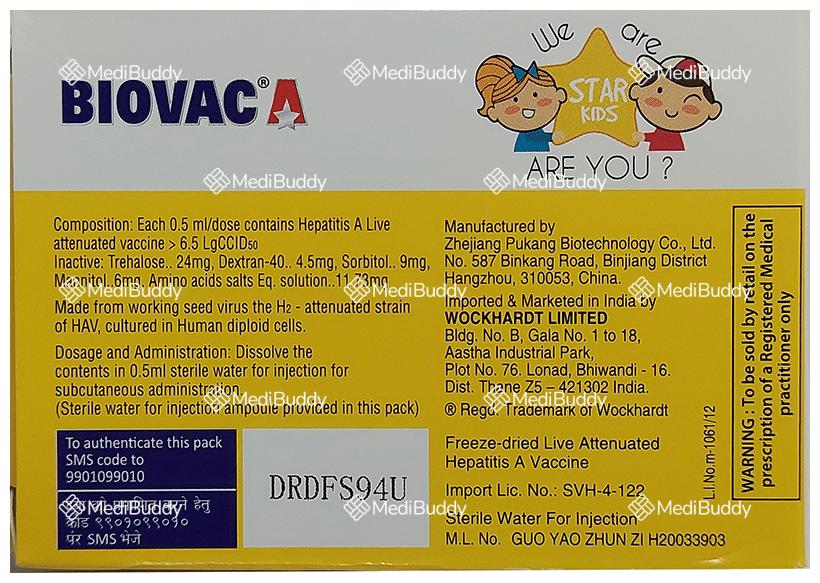 Administered as an injection by a medical professional, Biovac A Vaccine is primarily targeted towards children aged 12 months to 15 years. Vaccination is considered the most effective method for preventing hepatitis A, with multiple shots necessary to maximize its benefits. The exact number and schedule of shots required vary based on the specific vaccine received. In addition to vaccination, practicing good hand hygiene is also emphasized to help prevent the spread of hepatitis A.