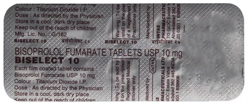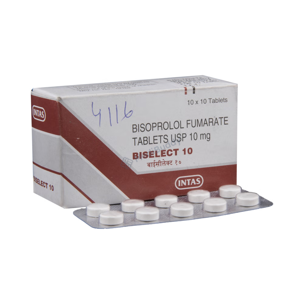Potential side effects include fatigue, headache, slow heart rate, dizziness, and nausea, which are usually mild and temporary. However, some individuals may experience shortness of breath or low blood pressure. To mitigate these effects, your doctor may start you on a low dose and adjust it gradually. Inform your doctor of any liver issues, slow heart rate, severe circulation problems, heart failure, or low blood pressure. Pregnant or breastfeeding individuals should consult their healthcare provider before usage. Additionally, alcohol consumption should be avoided, as it can enhance certain side effects. Regular blood pressure monitoring is recommended while using Biselect 10 Tablet.