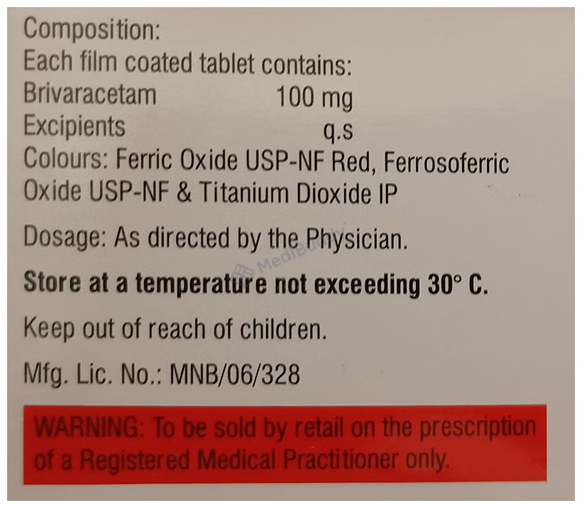 Brivgard 100 Tablet is an anti-epileptic medication used to treat seizures in epilepsy. It can be used on its own or in combination with other medicines to prevent seizures as long as it is taken regularly. This medication works by suppressing abnormal electrical activity in the brain. It is recommended to take Brivgard 100 Tablet at the same time each day to maximize its benefits. The dosage and frequency of usage will be determined by the doctor to ensure proper seizure control, which may be adjusted gradually over time.