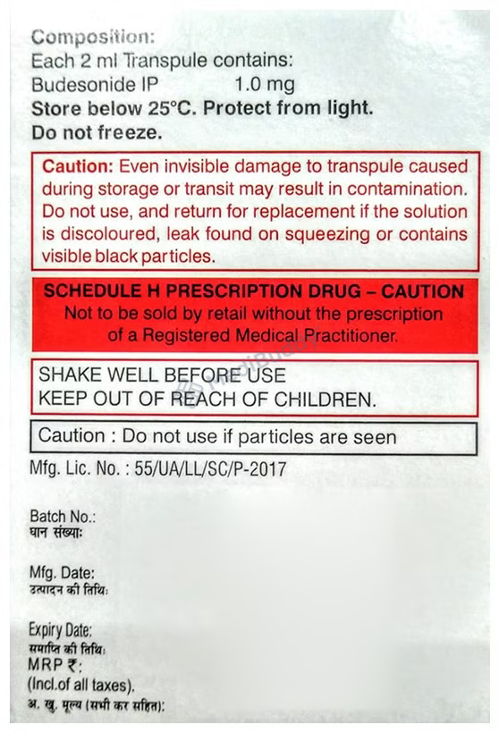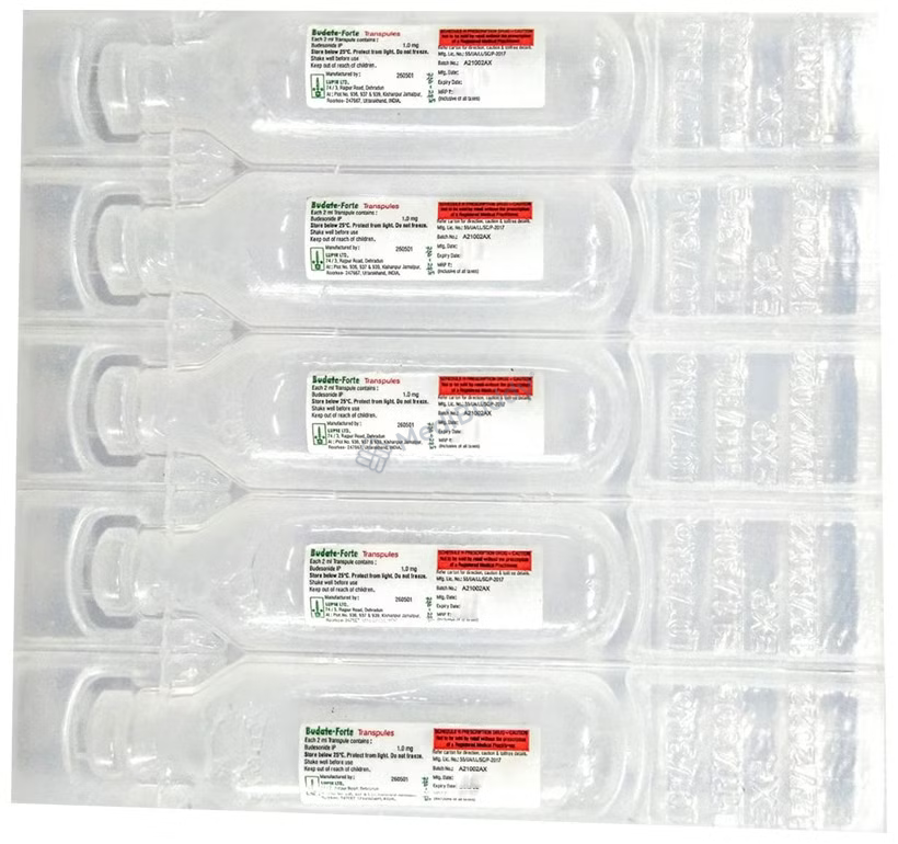 Budate Forte Transpules are meant for inhalation use only. Place the medication in a nebulizer and adjust it so the medicine forms a fine mist. Inhale the mist through the device. After inhalation, rinse your mouth with water or brush your teeth. Your doctor will determine the correct dosage, duration, and frequency based on your individual factors. Do not discontinue using Budate Forte Transpules without consulting your doctor for proper guidance.