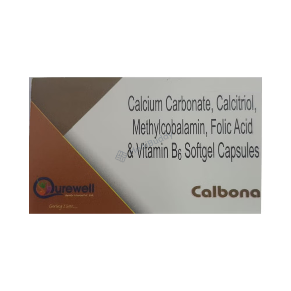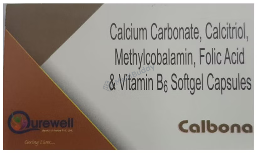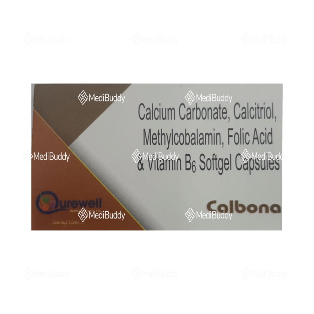 Before consuming Calbona Soft Gelatin Capsule, be aware that it is a medication used to address nutritional deficiencies, support cell growth, bone health, and heart function. This capsule aids in protein synthesis, blood cell production, and enhances immune system function. To ensure effectiveness, follow the prescribed dosage and usage duration as directed by your doctor. It is recommended to take the capsule consistently at a fixed time either with or without food.