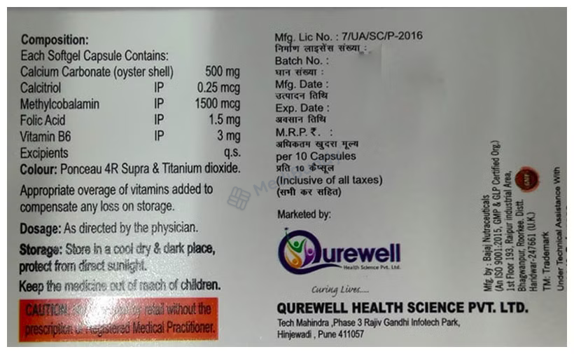 Calcium(500mg) + Calcitriol(0.25mcg) + Methylcobalamin(1500mcg) + Folic Acid(1.5mg) + Vitamin B6 (Pyridoxine)(3mg)