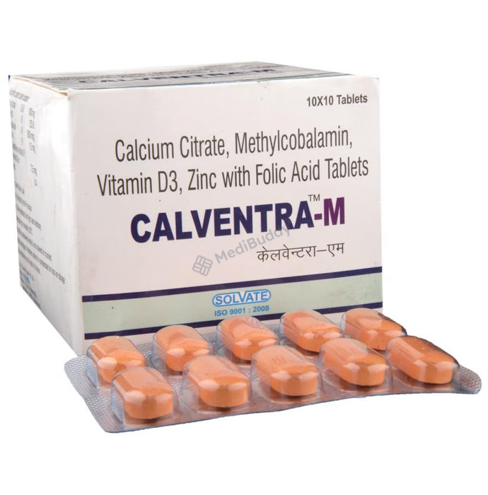 Calventra M Tablet is a specially designed supplement that focuses on enhancing bone health and overall well-being. The tablet contains a combination of key ingredients such as calcium citrate, vitamin D3, methylcobalamin, folic acid, and zinc sulfate monohydrate (which is equivalent to elemental zinc). These nutrients work together in a synergistic manner to provide comprehensive nutritional support to the body.