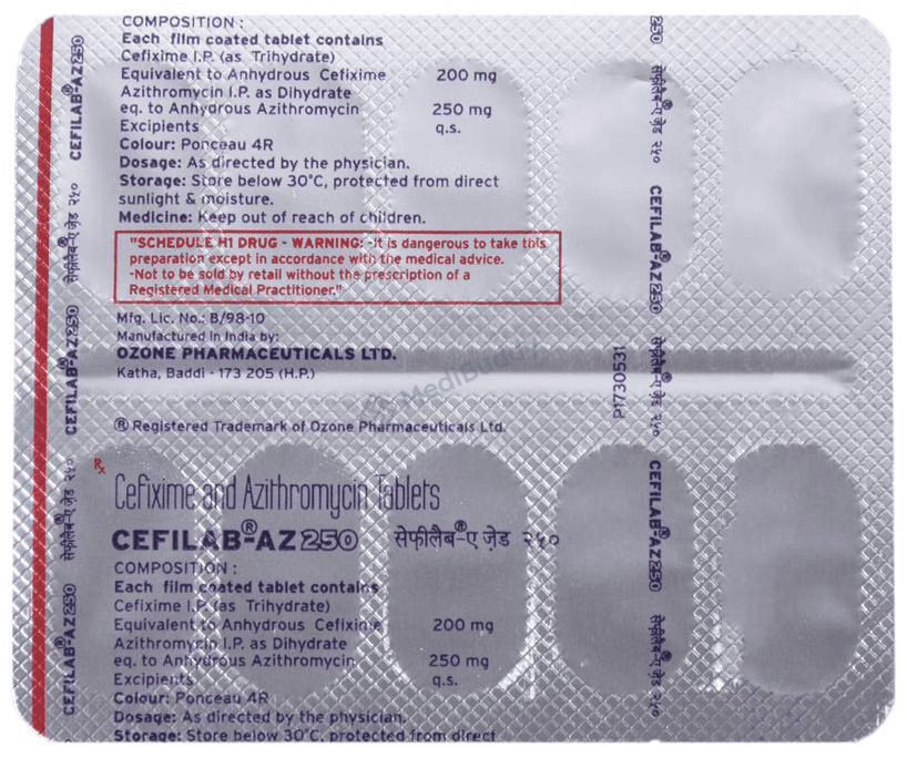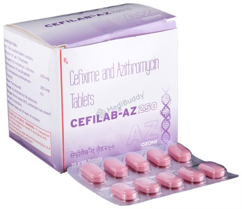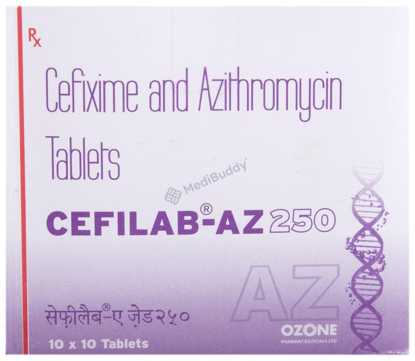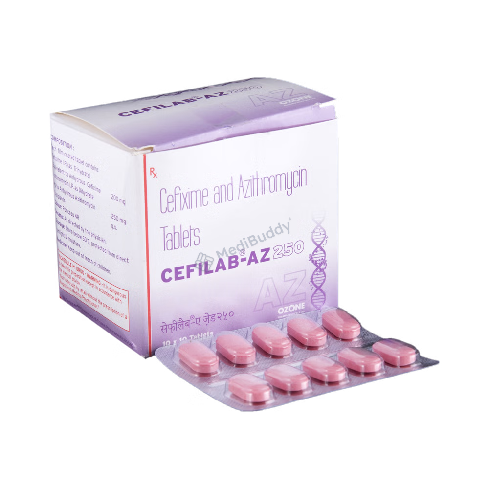 Cefilab-AZ 250 Tablet is a combination medicine used to treat various bacterial infections. It works by combating the microorganisms to halt their growth and prevent the further spread of the infection. This prescription medicine should be taken exactly as advised by your healthcare provider. While you can take it with or without food, it is crucial to take it at the same time every day for optimal effectiveness. Taking more than the prescribed dose can be harmful, so strict adherence to the recommended dosage is essential. In case of a missed dose, it is advisable to take it as soon as you remember. Completing the full course of treatment is necessary even if you start feeling better, as abruptly stopping the medication could impact its potency.