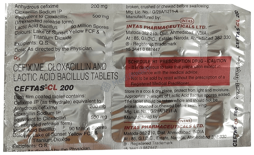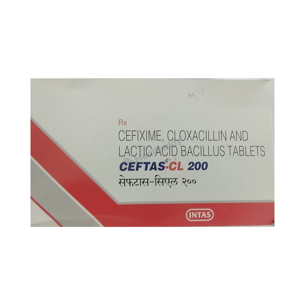 Ceftas CL 200 mg Tablet is a prescription medicine used to treat various bacterial infections. It works by fighting the infection to stop the growth and spread of harmful microorganisms. Additionally, it can help prevent diarrhea that may occur as a side effect of the treatment. It is important to take this medicine as per your doctor's instructions, at regular times, and complete the full course of treatment even if you start feeling better. This medication may cause side effects like nausea, vomiting, diarrhea, and stomach discomfort, but most of these side effects usually improve over time. If you experience any severe reactions or allergies, seek medical help immediately.