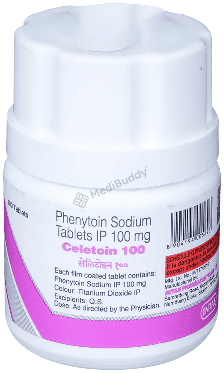 Celetoin 100 Tablet contains Phenytoin, which is an Anti-epileptic drug used to treat epilepsy, specifically seizures. It works by reducing abnormal nerve cell activity in the brain. The tablet may be taken alone or in combination with other medications, with or without food, as prescribed by your doctor. The dosage may be adjusted gradually until your condition stabilizes. It is essential to take the medicine regularly for it to be effective, even if you feel better.