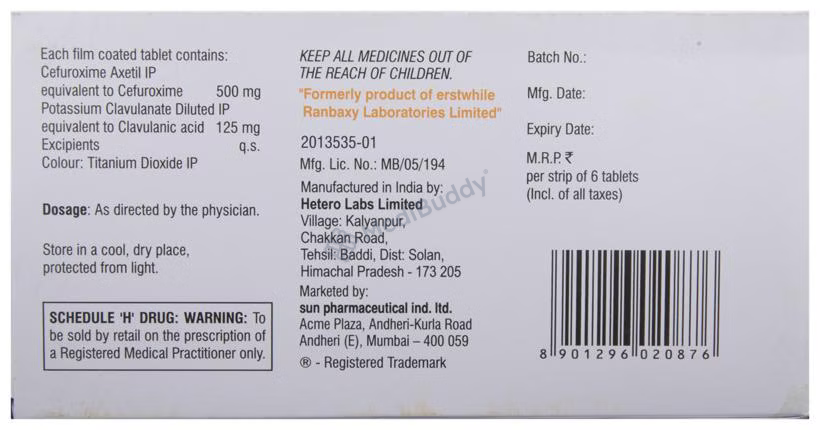 Cefuroxime(500mg) + Clavulanic Acid(125mg)