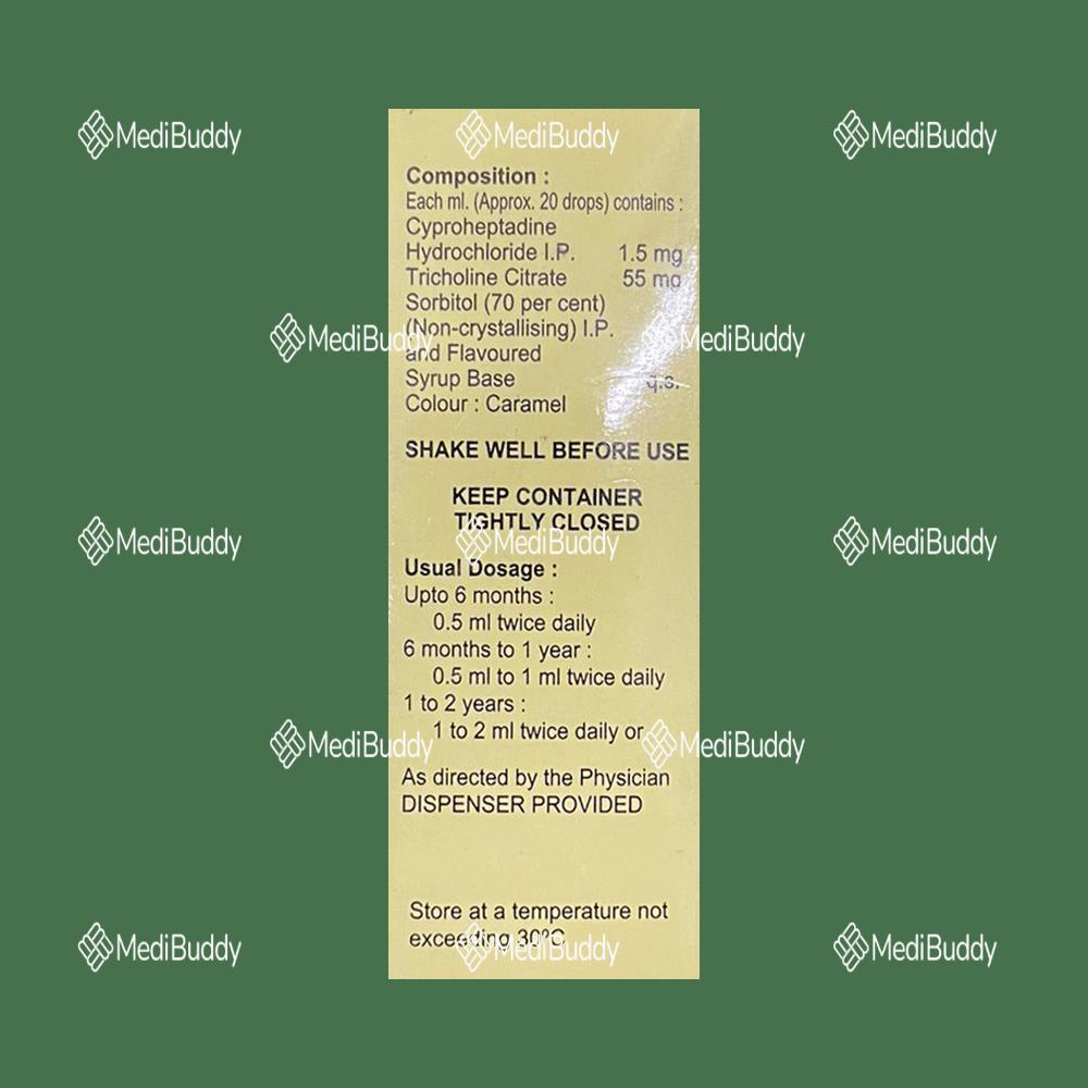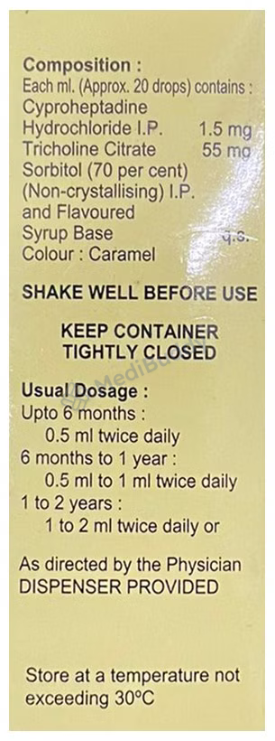 Cyproheptadine(1.5mg/ml) + Tricholine Citrate(55mg/ml) + Sorbitol(3.575gm/5ml)