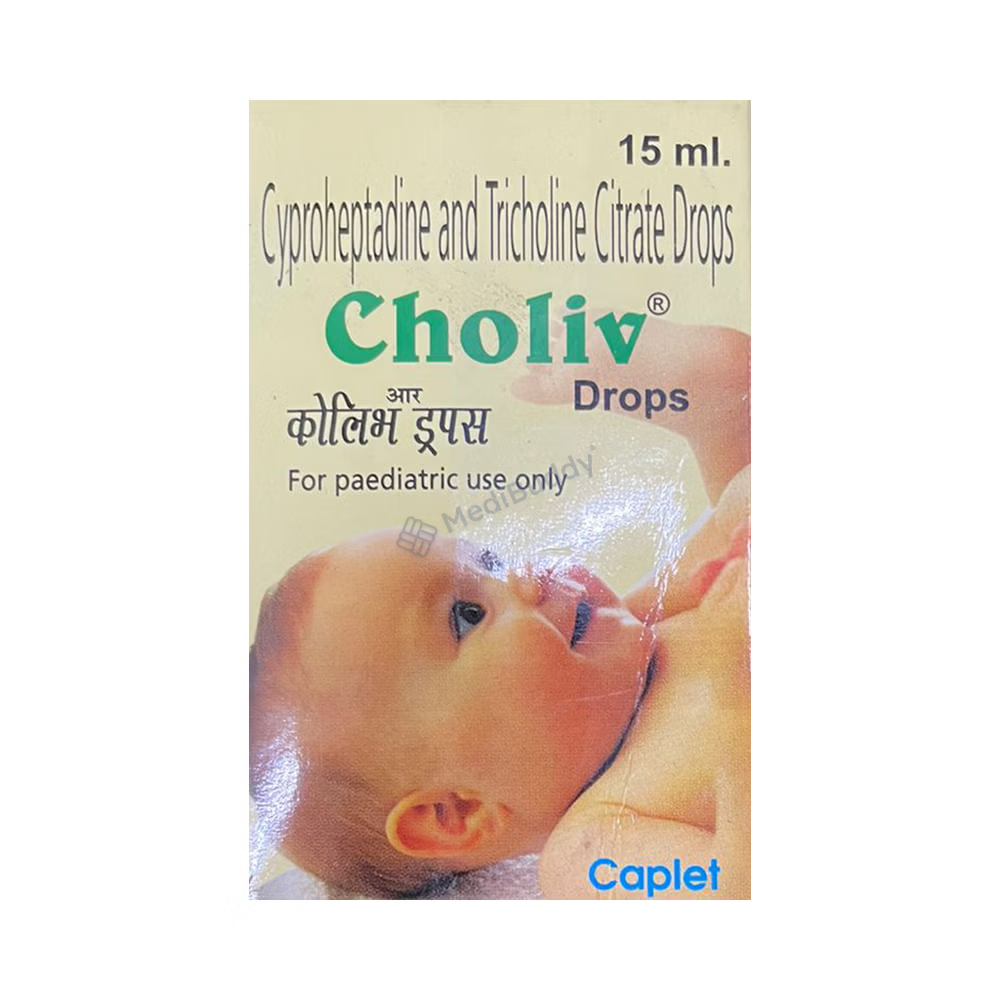 The composition of Choliv Drops 15 ml includes two active ingredients: Cyproheptadine, an antihistamine and antiallergic agent, and Tricholine, a bile acid binder. Cyproheptadine functions by diminishing the impact of a chemical messenger in the hypothalamus known as serotonin, thereby aiding in appetite stimulation. Conversely, Tricholine acts as a bile acid-binding agent that helps in the removal of excess bile acid from the body, promoting the utilization of cholesterol and reducing fat content.