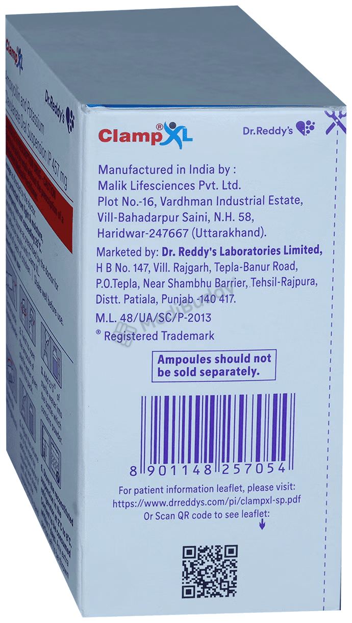 To properly use Clamp XL Oral Suspension, first, make sure to follow the dose and duration prescribed by your doctor. Before taking the syrup, carefully read the label for directions. To measure the correct amount, use a measuring cup provided in the pack. Remember to shake the bottle well before each use. It is recommended to take Clamp XL Oral Suspension with food.