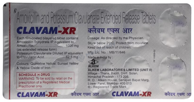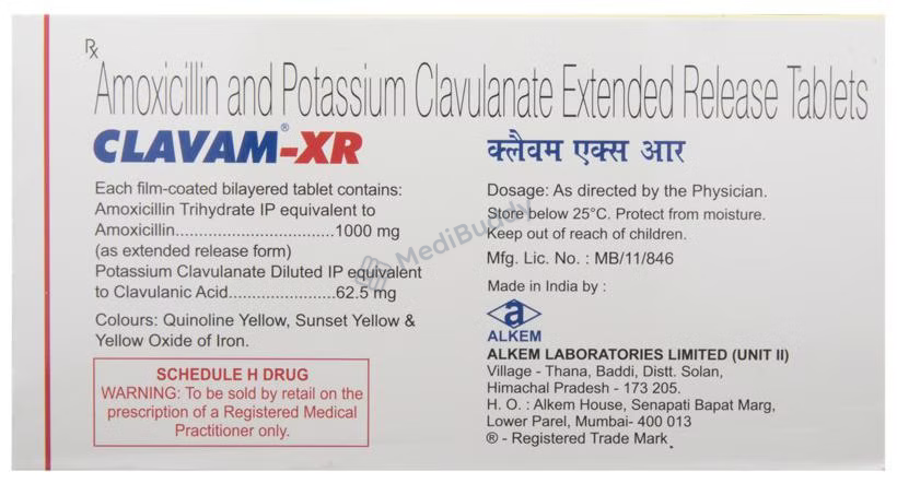 Clavam-XR Tablet is an antibiotic medication that helps the body combat infections caused by bacteria. This medication is effective in treating a variety of infections, including those affecting the lungs (such as pneumonia), ear, nasal sinus, urinary tract, skin, and soft tissue. It is essential to note that Clavam-XR Tablet does not work against viral infections like the common cold.